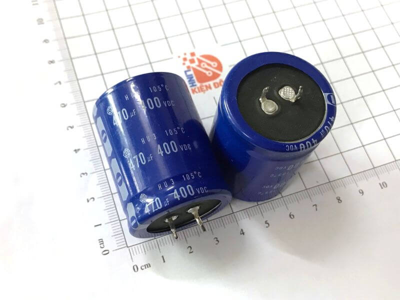 Dung lượng 470uF – điện áp 400V, đáp ứng tốt cho nhu cầu lọc và ổn định điện áp.