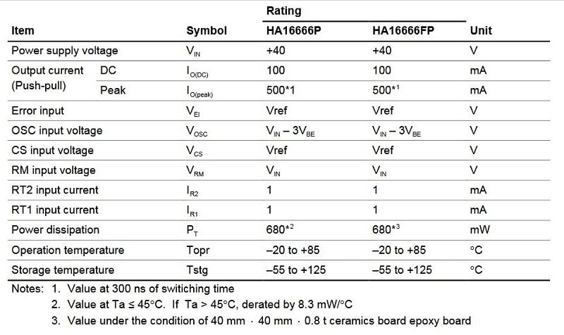 HA16666FP là IC điều khiển chế độ điện áp (điều chế độ rộng xung) cho bộ điều chỉnh chuyển mạch điều khiển. Nó có thể điều khiển MOS FET công suất hiệu quả ở tần số 600 kHz. Dòng điện ổn định của nó là 0,3 mA (tối đa) và được sử dụng làm nguồn điện điều khiển chính.
