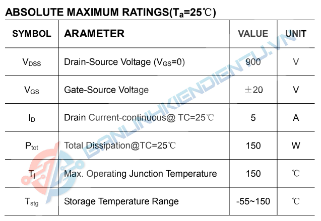 2SK539 MOSFET kênh N 900V 5A TO 3PL tháo máy