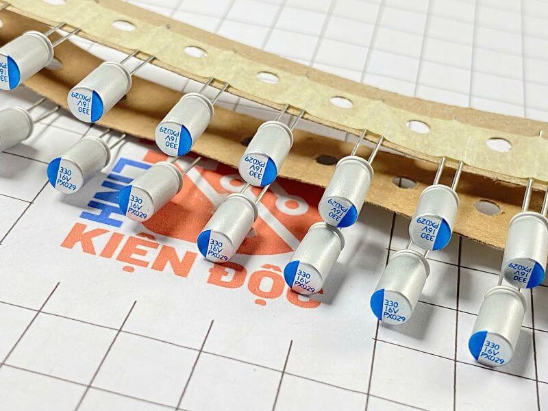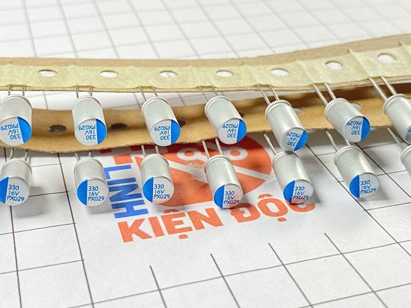 - Dung lượng: 330µF, cho phép lưu trữ một lượng điện tích đáng kể, thích hợp cho các ứng dụng lọc và ổn định điện áp.