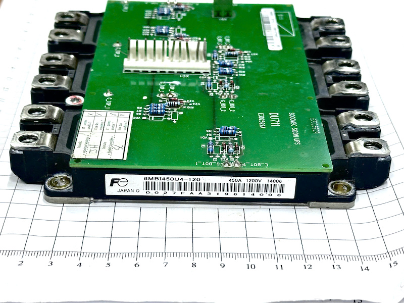 IGBT module 6MBI450U4-120 được thiết kế tích hợp 6 IGBT trong cùng một khối (6 in one). Thiết bị này được sử dụng phổ biến trong các bộ biến tần công nghiệp, bộ nghịch lưu, và hệ thống điều khiển động cơ công suất lớn. Module có khả năng chịu điện áp cao 1200V và dòng định mức lên đến 450A, phù hợp cho các ứng dụng yêu cầu hiệu suất cao và độ tin cậy lớn. Phiên bản “tháo máy” thường là linh kiện đã qua sử dụng, được tháo từ thiết bị công nghiệp còn hoạt động tốt, thích hợp cho mục đích sửa chữa hoặc nghiên cứu.