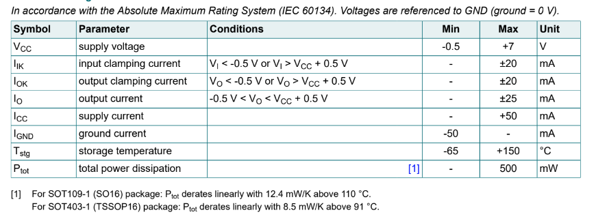 Giá trị được đề suất của IC 74HC112A (phạm vi hoạt động)