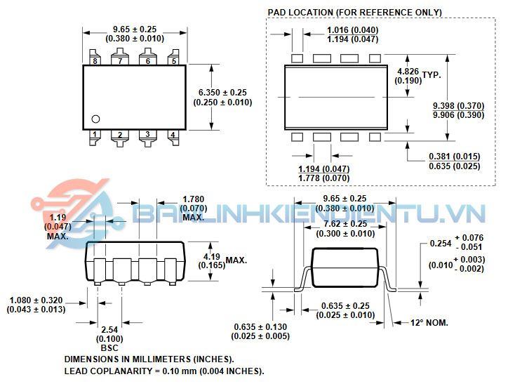 - SOP-8: Đây là gói Small Outline Package với 8 chân, là một dạng gói bề mặt, nhỏ gọn, thích hợp cho việc lắp ráp trên bo mạch in (PCB) có diện tích hạn chế.