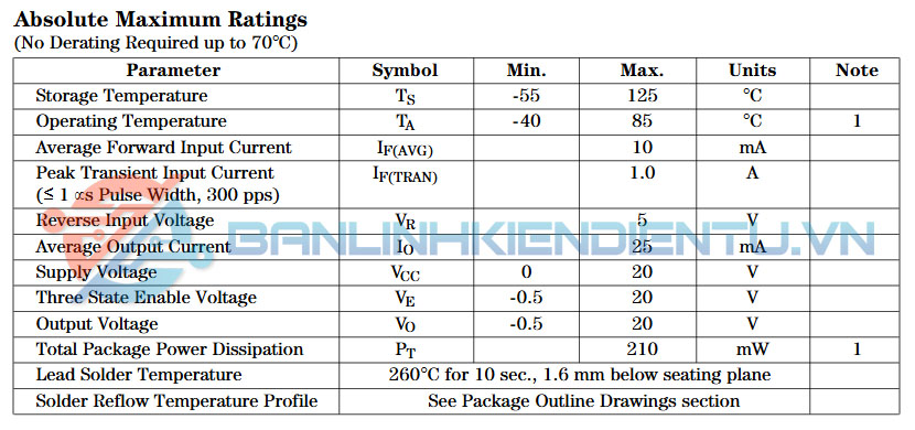 - Điện áp vào (V_F): Khoảng 1.2V tại dòng điện 10mA cho phần LED. Đây là điện áp cần thiết để kích hoạt LED trong optocoupler.