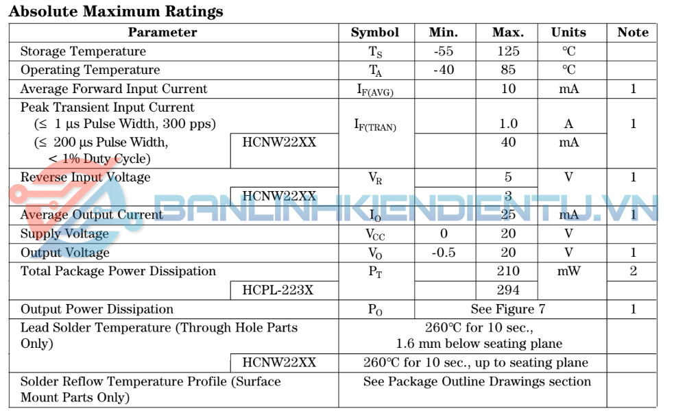 - Tấm chắn bên trong vượt trội trên HCPL-2211 đảm bảo khả năng miễn nhiễm nhất thời ở chế độ chung là 10 kV/μs ở điện áp chế độ chung là 1000V.