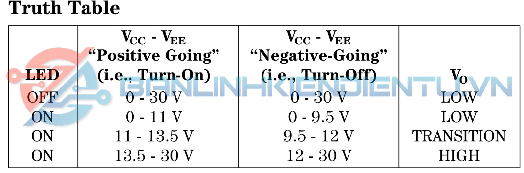 - Điện áp đầu ra mức thấp tối đa 1,0V
