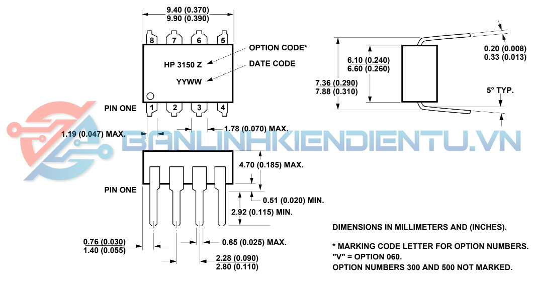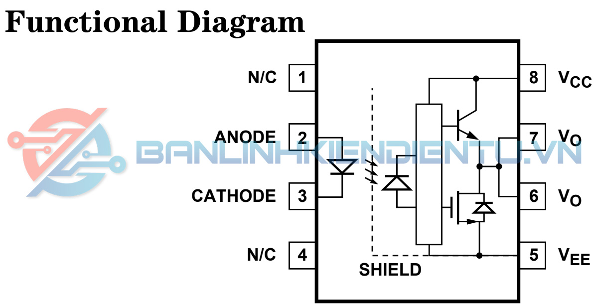 - HCPL-3150 bao gồm một Đèn LED GaAsP được ghép nối quang học với một mạch tích hợp với một giai đoạn đầu ra công suất. Bộ ghép quang này phù hợp điều khiển IGBT và MOSFET được sử dụng trong ứng dụng biến tần điều khiển động cơ