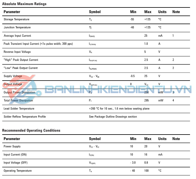Bảng thông số Opto A3180