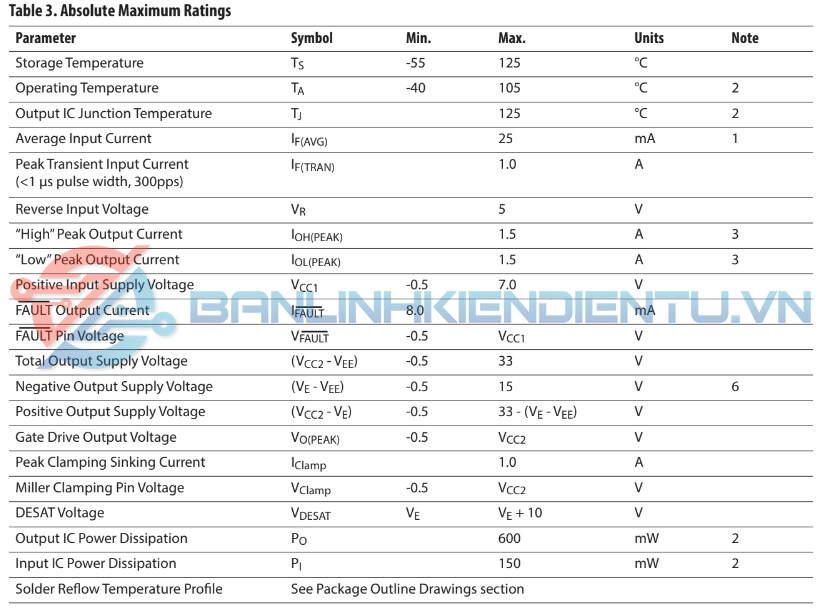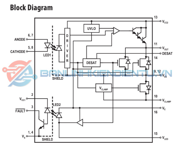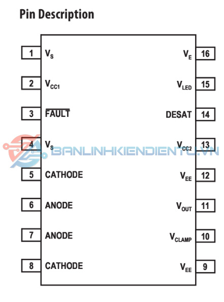 - Phạm vi hoạt động VCC rộng: 15 V đến 30 V trong phạm vi nhiệt độ