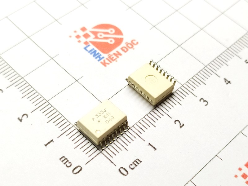 - A333J chứa đèn LED GaAsP. Đèn LED được ghép nối quang học với một mạch tích hợp có tầng đầu ra nguồn. ACPL-333J lý tưởng cho việc điều khiển IGBT và MOSFET công suất được sử dụng trong các ứng dụng biến tần điều khiển động cơ. Điện áp và dòng điện được cung cấp bởi các bộ ghép quang này khiến chúng phù hợp lý tưởng để điều khiển trực tiếp IGBT có định mức lên tới 1200 V và 150 A. Đối với các IGBT có định mức cao hơn, ACPL-333J có thể được sử dụng để điều khiển một giai đoạn nguồn rời rạc điều khiển cổng IGBT . ACPL-333J có điện áp cách điện VIORM = 891 VPEAK.