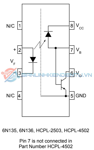 Bộ ghép quang HCPL-4502 bao gồm một đèn LED AlGaAs được ghép nối quang học với một bóng bán dẫn tách sóng quang tốc độ cao.