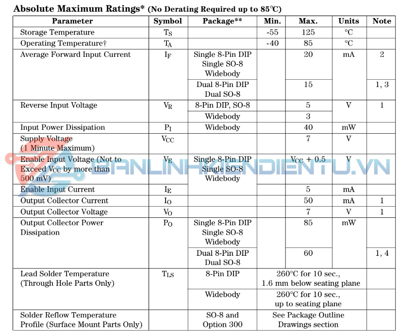 - Các thông số vận hành ac và dc của bộ ghép quang được đảm bảo từ -40°C đến +85°C cho phép hiệu suất hệ thống không gặp sự cố