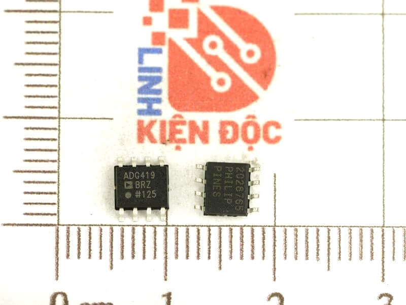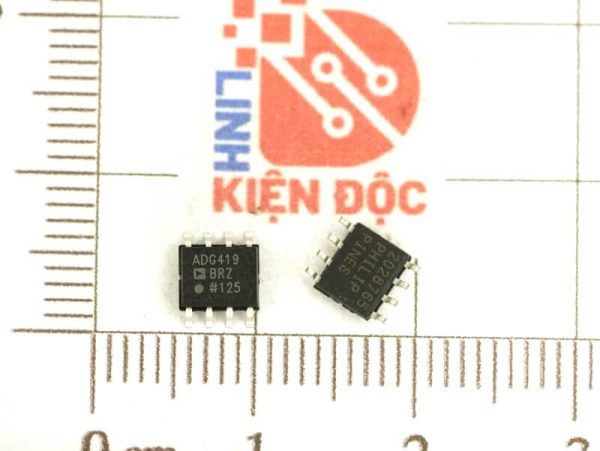 ADG419 là công tắc CMOS SPDT nguyên khối. Công tắc này được thiết kế trên quy trình LC2MOS nâng cao cung cấp khả năng tiêu tán điện năng thấp nhưng vẫn mang lại tốc độ chuyển mạch cao, điện trở bật thấp và dòng rò rỉ thấp. Hồ sơ điện trở bật của ADG419 rất phẳng trên toàn bộ phạm vi đầu vào tương tự, đảm bảo độ tuyến tính tuyệt vời và độ méo tiếng thấp. Bộ phận này cũng thể hiện tốc độ chuyển mạch cao và băng thông tín hiệu cao. Cấu trúc CMOS đảm bảo khả năng tiêu tán điện năng cực thấp, khiến các bộ phận này trở nên lý tưởng cho các thiết bị cầm tay và chạy bằng pin. Mỗi công tắc của ADG419 dẫn điện tốt như nhau theo cả hai hướng khi BẬT và có phạm vi tín hiệu đầu vào mở rộng đến nguồn cung cấp. Ở trạng thái TẮT, mức tín hiệu lên đến nguồn cung cấp sẽ bị chặn. ADG419 thể hiện hành động chuyển mạch ngắt trước khi đóng.