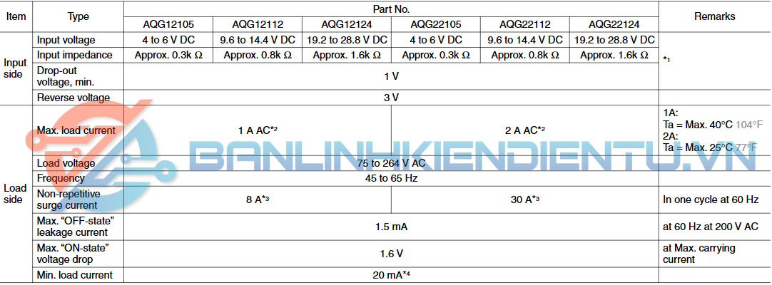 AQG22124 thuộc dòng SSR của Panasonic, được thiết kế để điều khiển tải AC với độ bền cao và hiệu suất vượt trội. Linh kiện này sử dụng công nghệ bán dẫn thay cho các tiếp điểm cơ học, mang lại sự ổn định và tuổi thọ cao trong các ứng dụng công nghiệp.