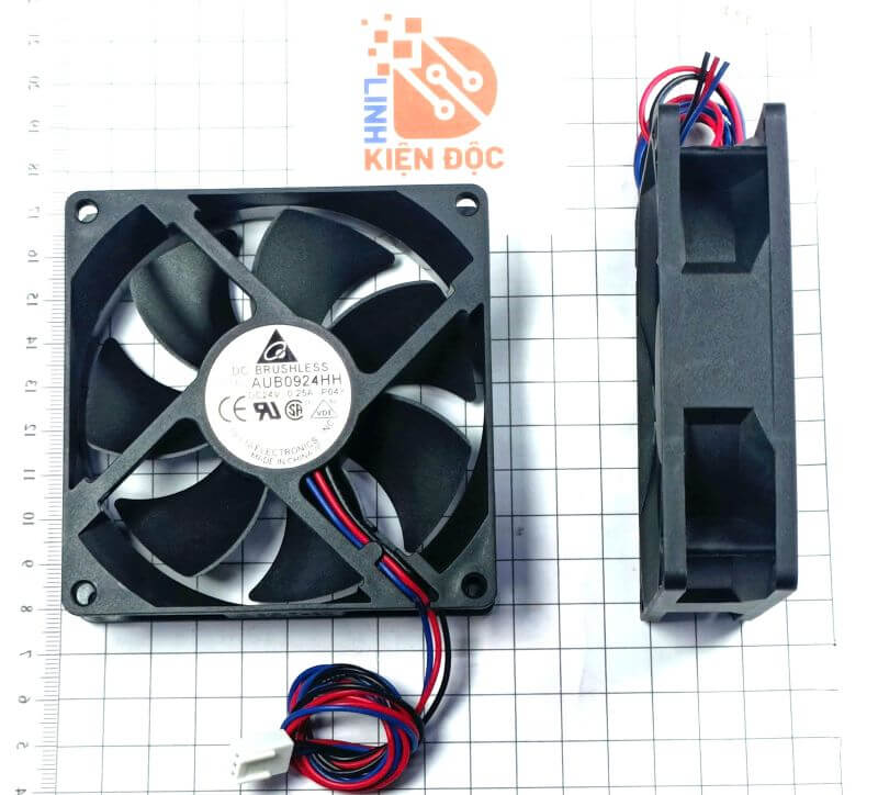 Delta AUB0924HH là loại quạt tản nhiệt DC chất lượng cao. Quạt hoạt động với điện áp 24V DC, dòng định mức 0.25A, công suất tiêu thụ khoảng 3W. Đây là dòng quạt có hiệu suất làm mát tốt, độ bền cao, phù hợp cho các thiết bị công nghiệp, biến tần, máy chủ, tủ điện và các thiết bị điện tử cần tản nhiệt mạnh.