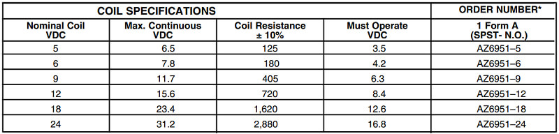 Đặc trưng kỹ thuật của dòng Relay AZ6951