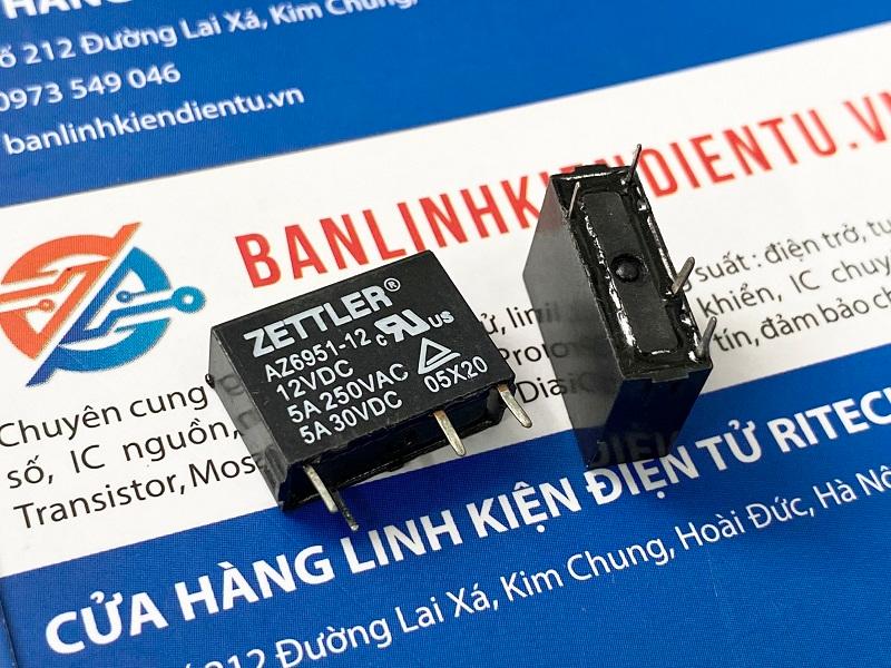 AZ6951 là một relay điện cơ (electromechanical relay) được thiết kế để sử dụng với điện áp cuộn dây 12VDC và có khả năng chuyển mạch các tải có dòng điện lên đến 5A. Đây là loại relay có cấu hình tiếp điểm SPDT (Single Pole Double Throw), cho phép chuyển mạch giữa hai mạch khác nhau. Relay AZ6951 là một lựa chọn phù hợp cho các ứng dụng yêu cầu chuyển mạch ổn định và đáng tin cậy với tải vừa phải.