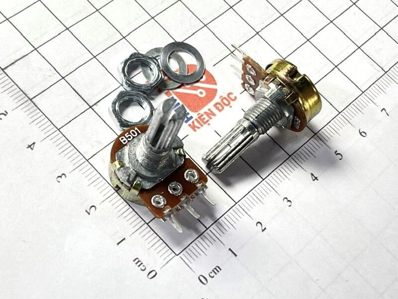 Biến trở đơn B501 WH148 là biến trở xoay tuyến tính có giá trị 500Ω, thiết kế 3 chân hàn PCB và trục vặn dài khoảng 20mm. Đây là dòng biến trở phổ biến trong các mạch điều chỉnh tín hiệu, âm lượng và điện áp nhỏ.