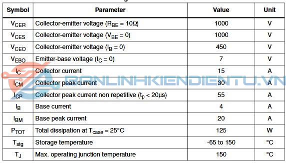 BUV48A là transistor lưỡng cực công suất (NPN Power Bipolar Junction Transistor) chuyên dùng cho các mạch công suất cao, tần số trung bình, thường gặp trong biến tần, nguồn xung, bộ khuếch đại công suất, và mạch điều khiển động cơ. Thuộc nhóm High Power Switching Transistor, được đóng gói theo chuẩn TO-247, loại vỏ phổ biến cho các linh kiện công suất cần tản nhiệt tốt. Linh kiện có khả năng chịu dòng lớn, chịu điện áp cao và tốc độ chuyển mạch tương đối nhanh, phù hợp cho môi trường công nghiệp.