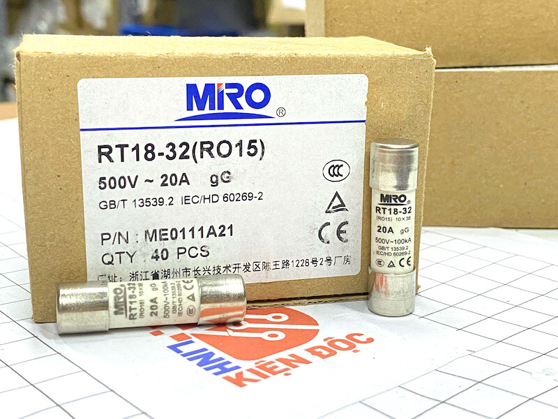 Cầu chì sứ 500V 20A MIRO RT18-32 RO15 10x38mm