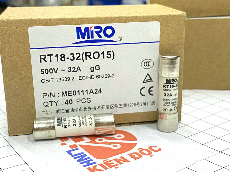 - Mã sản phẩm: MIRO RT18-32 RO15 (Mã sản phẩm chỉ ra các thông số kỹ thuật, nhà sản xuất và các đặc điểm khác của cầu chì).