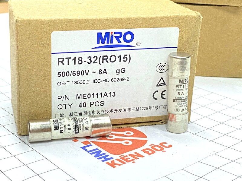 Cầu chì sứ 500V 8A MIRO RT18-32 RO15 10x38mm