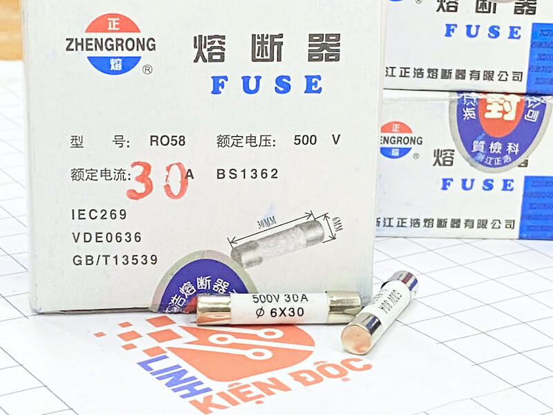 Cầu chì sứ R058 30A 500V (6x30mm) là loại cầu chì ống chịu tải lớn, vỏ sứ cao cấp, chuyên dùng bảo vệ các mạch điện, thiết bị công suất cao khỏi các sự cố quá dòng hoặc ngắn mạch. Nhờ thiết kế tiêu chuẩn 6x30mm, sản phẩm dễ dàng thay thế, lắp đặt trên các đế cầu chì phổ biến, đáp ứng nhu cầu bảo vệ an toàn trong hệ thống điện dân dụng và công nghiệp.