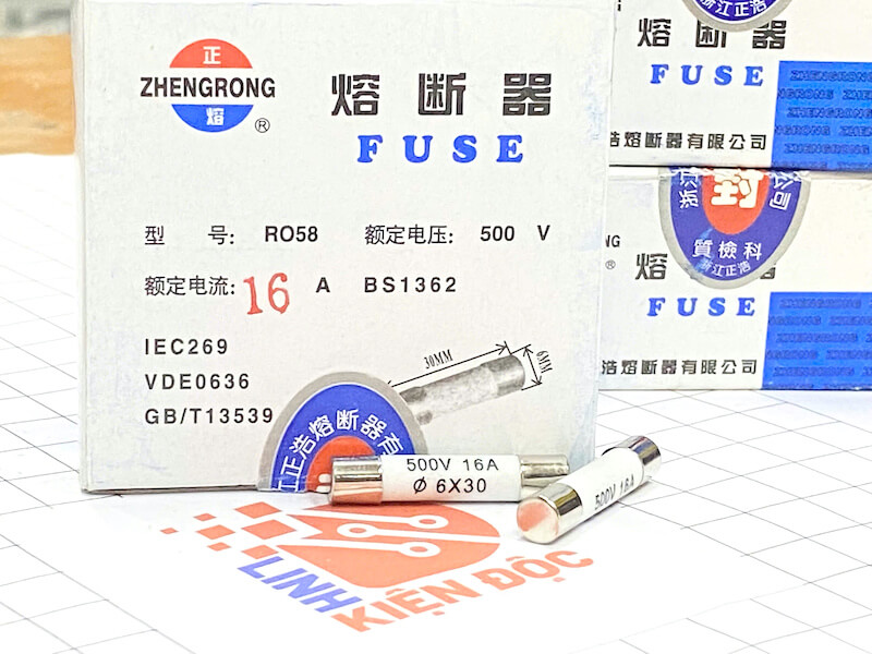 Cầu chì sứ R058 16A 500V là loại cầu chì bảo vệ dòng điện dạng trụ nhỏ, thiết kế chuyên dụng cho các thiết bị và mạch điện có công suất vừa đến cao. Với dòng định mức 16A và điện áp làm việc tối đa 500V AC, sản phẩm này giúp bảo vệ mạch hiệu quả trước hiện tượng quá tải hoặc ngắn mạch. Kích thước tiêu chuẩn 6 × 30mm giúp lắp đặt dễ dàng trên các đế cầu chì dạng kẹp thông dụng trong dân dụng và công nghiệp nhẹ.
