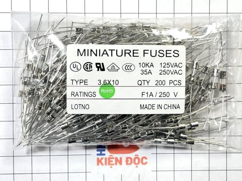 Cầu chì thủy tinh 1A 250V 3.6×10mm loại chân hàn là linh kiện bảo vệ quá dòng phổ biến trong các mạch điện – điện tử. Cầu chì có nhiệm vụ ngắt mạch khi dòng điện vượt quá 1A, giúp bảo vệ linh kiện, bo mạch và thiết bị khỏi hư hỏng do quá tải hoặc chập mạch.