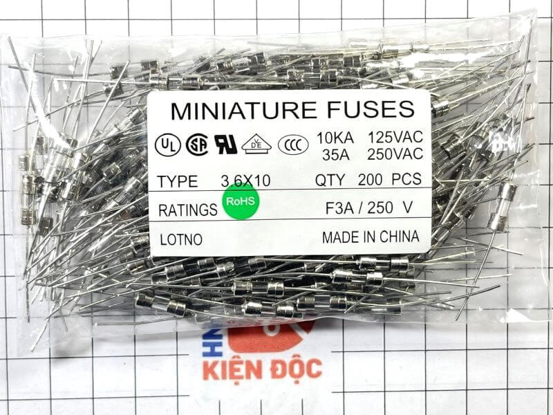 Cầu chì thủy tinh 3A 250V 3.6×10mm loại chân hàn là linh kiện bảo vệ quá dòng dùng trong các mạch điện – điện tử có dòng làm việc trung bình đến tương đối cao. Khi dòng điện vượt quá 3A, dây chảy bên trong cầu chì sẽ nóng chảy và ngắt mạch, giúp bảo vệ thiết bị và bo mạch khỏi hư hỏng do quá tải hoặc chập mạch.