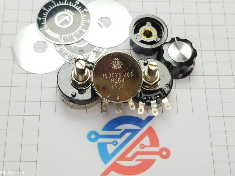 - Loại biến trở: Biến trở quay, cho phép điều chỉnh giá trị điện trở bằng cách xoay trục.
