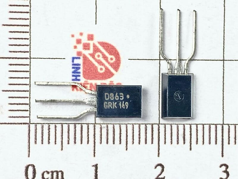 D863 là một transistor loại NPN đóng gói dạng TO-92, thường được sử dụng trong các mạch khuếch đại tín hiệu nhỏ, mạch nguồn và các thiết bị điện tử dân dụng. Linh kiện này có đặc tính điện áp và dòng điện trung bình, thích hợp cho nhiều ứng dụng phổ thông.
