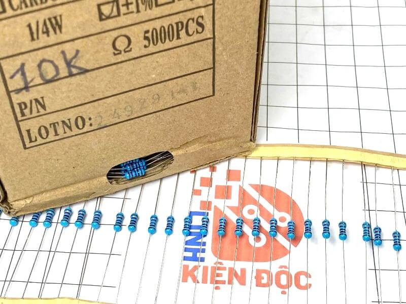 - Độ chính xác ±5% cho biết giá trị thực tế của điện trở có thể dao động xung quanh giá trị danh định 10KΩ.