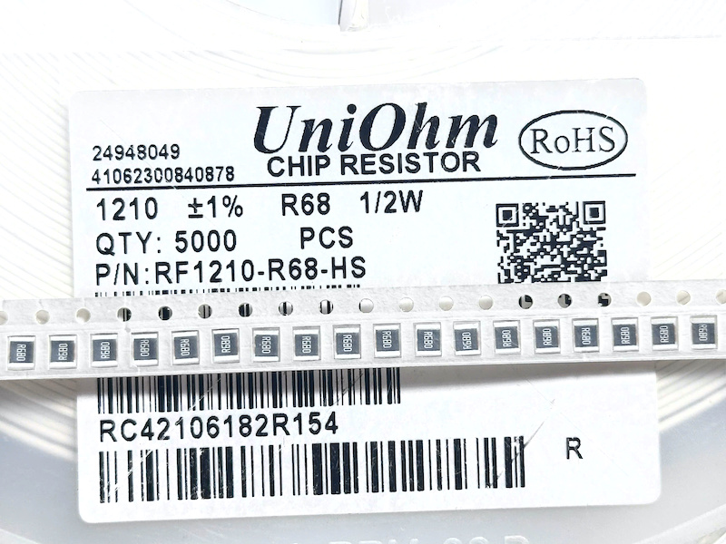 Điện trở 1210 là dòng điện trở dán bề mặt (SMD) có kích thước chuẩn 3.2mm x 2.5mm. Giá trị trở 0.68 Ohm phù hợp để hạn dòng trong mạch LED, transistor hoặc dùng như một điện trở shunt giúp đo dòng điện một cách chính xác bằng điện áp rơi trên nó.