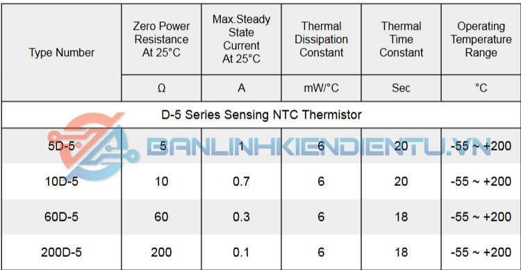 - Điện trở giảm mạnh khi nhiệt độ tăng, giúp giảm dòng khởi động và bảo vệ mạch.