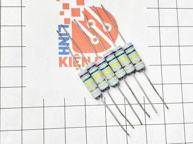 – Mã màu 4 vòng: Tím – Xanh lá – Vàng – Vàng (hoặc vòng cuối là Vàng/Bạc với ý nghĩa sai số 5%)