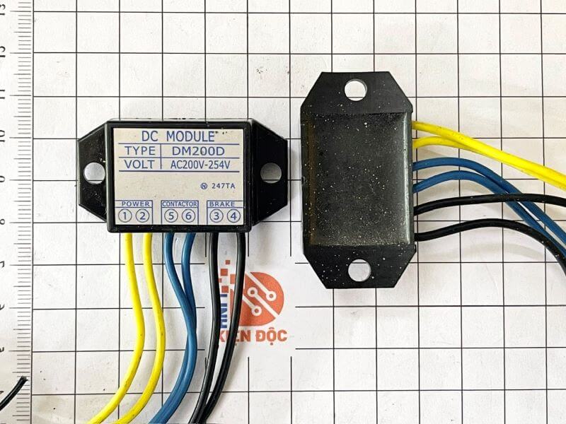 Khi cung cấp AC (200-254V) vào module DM200D, module chuyển đổi thành dòng DC phù hợp để cấp cho cuộn thắng của motor.