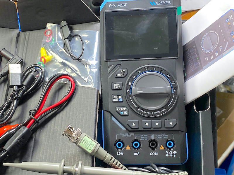Đồng hồ FNIRSI DST-210 là thiết bị đo đa năng tích hợp ba chức năng trong một: đồng hồ vạn năng, máy hiện sóng và máy phát tín hiệu. Thiết bị có thiết kế cầm tay gọn gàng, màn hình màu 2.8 inch, giao diện dễ sử dụng và phù hợp cho công việc sửa chữa, kiểm tra, nghiên cứu trong lĩnh vực điện – điện tử.