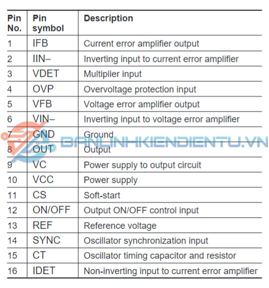 - Dòng điện chờ thấp (thường là 90μA) cho mạch khởi động đơn giản