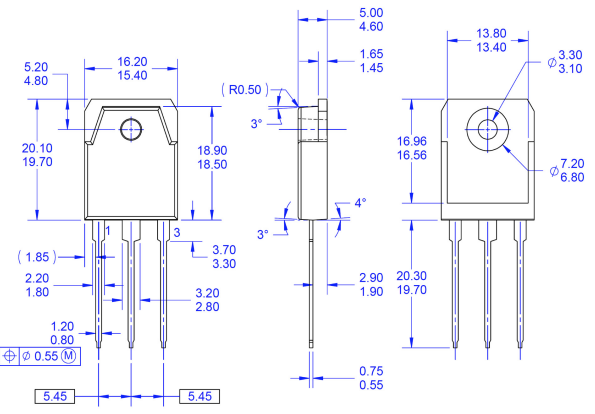 Kiểu chân TO-3P tản nhiệt tốt, dễ lắp ráp lên tản nhôm.