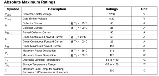 THÔNG SỐ KỸ THUẬT FGA15N120