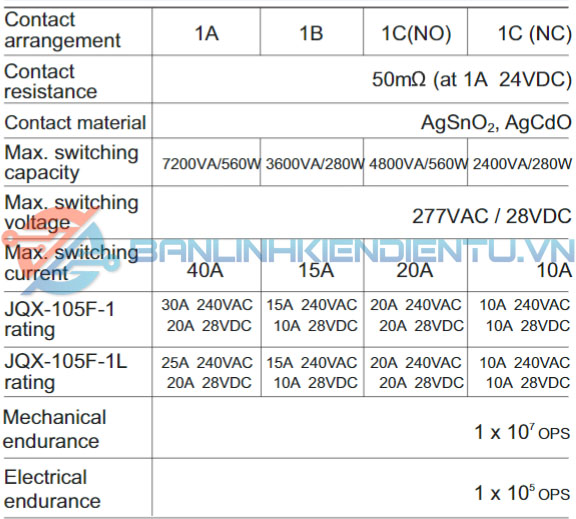 - ≤ 100 mΩ: Điện trở thấp của tiếp điểm giúp giảm thiểu tổn thất năng lượng và tăng hiệu suất truyền dẫn.