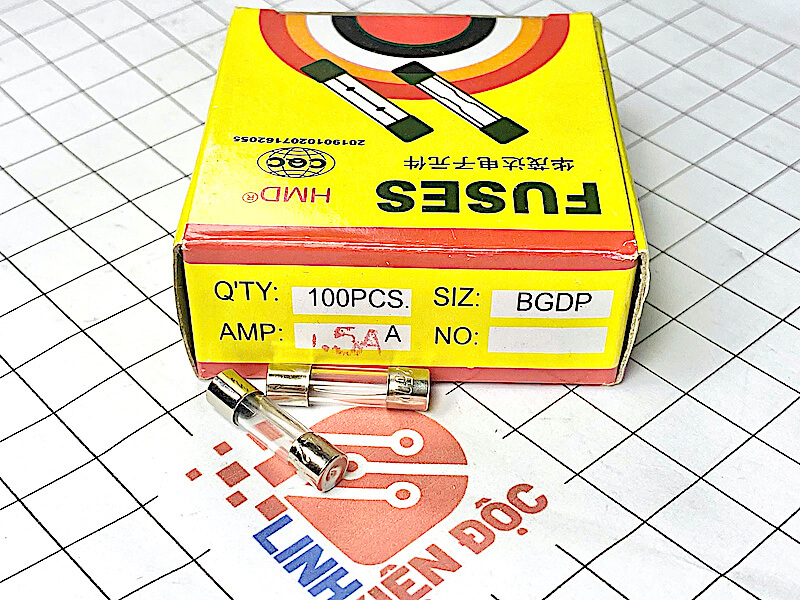 - 1.5A: Dòng điện định mức của cầu chì là 1.5A, bảo vệ các thiết bị hoặc mạch điện có dòng điện tối đa 1.5A.