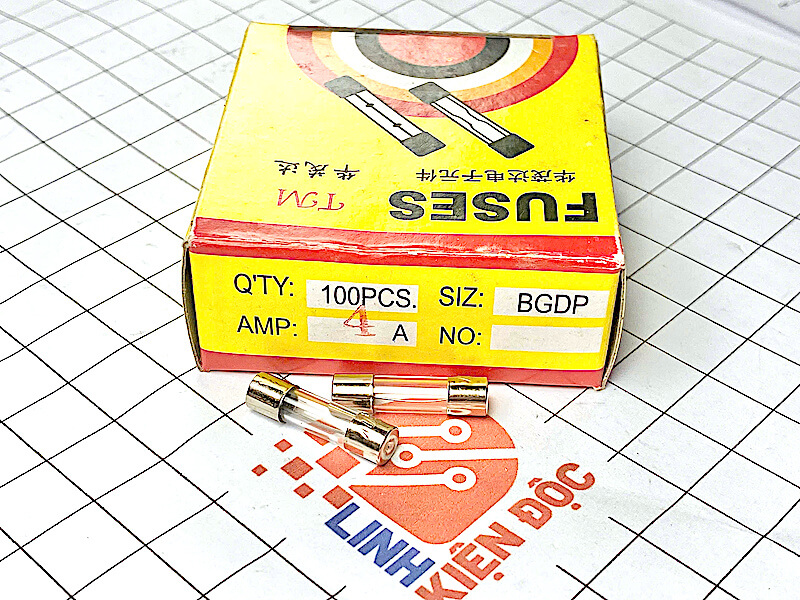 - 4A: Dòng điện định mức của cầu chì là 4A, bảo vệ mạch điện hoặc thiết bị có dòng điện tối đa là 4A.