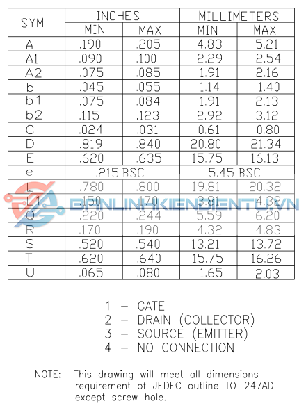 Đóng gói: TO-247 (3 chân: Gate, Drain, Source)