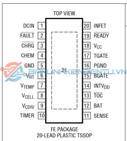 - Gói TSSOP tăng cường nhiệt 20 chân