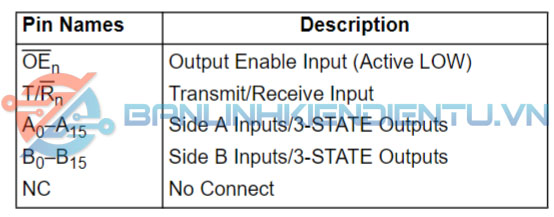 - Chức năng: Bộ thu phát bus 16-bit, không đảo, 3-state.