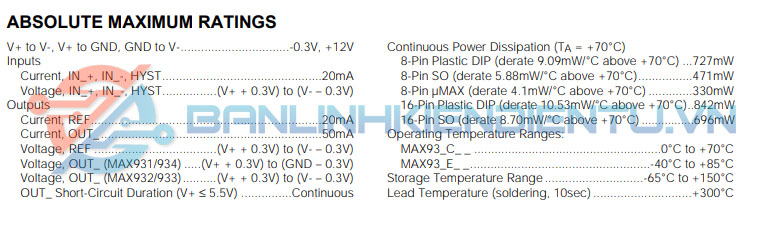 - Thiết bị di động: Với dòng tiêu thụ thấp, MAX934 phù hợp cho các thiết bị cầm tay hoặc hệ thống yêu cầu hiệu quả năng lượng.