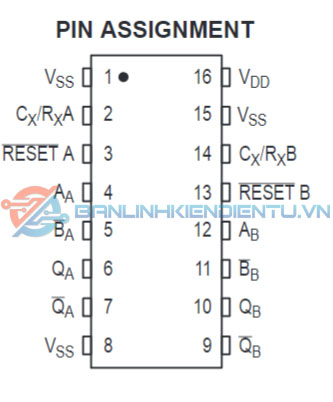 - Chân cắm tương thích với MC14528B và CD4528B (CD4098)