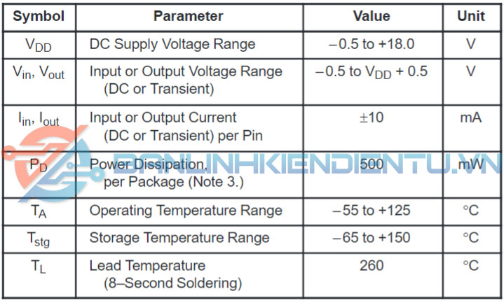 - Giới hạn hoạt động 3,0Vdc đến 18Vdc